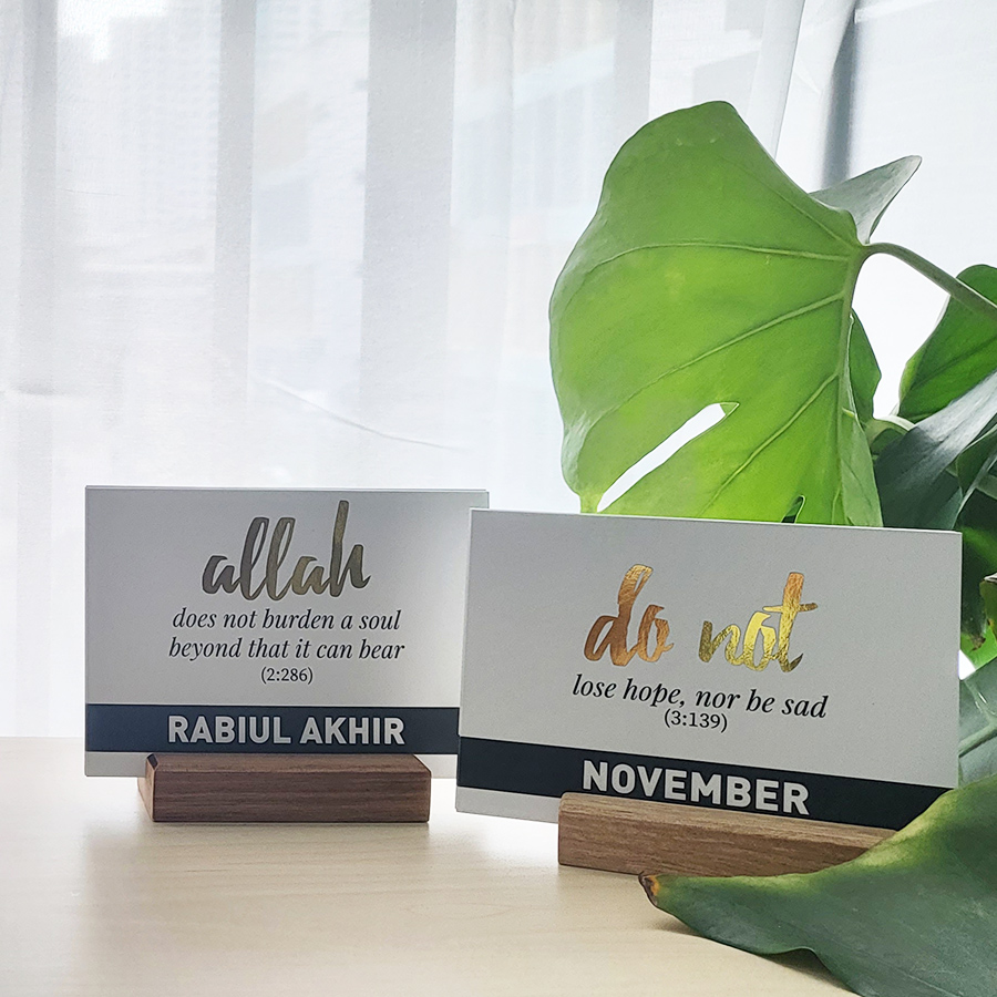 After the Covid pandemic in 2020, Wan & Zee decided to conclude PlayPause. It was only in Spring of 2024, the daily Hijri calendar started to take its shape. Verses from the Qur’an English translation were taken from an Oxford University Press book.