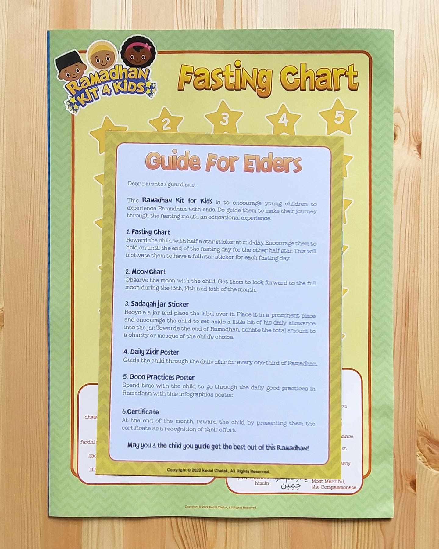 Ramadhan Kit 4 Kids, is not only focused on fasting & getting that star sticker after each completed day. The Kit is a holistic experience, the whole package on how to encourage your little ones to embrace the spirit of Ramadhan.