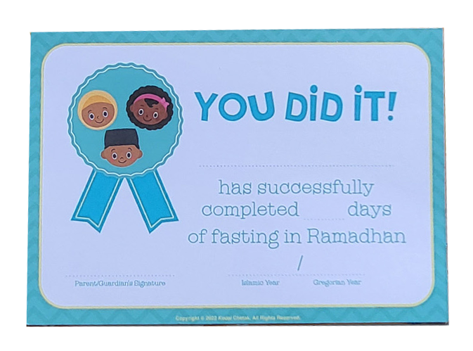 The Certificate is a reward to recognise your child’s effort throughout the fasting month. Present the certificate to them on the last day of the fasting month.
